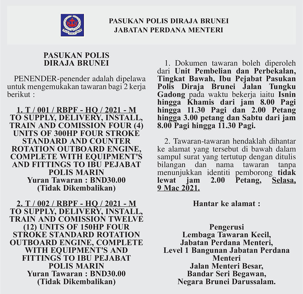 Jabatan perdana menteri provides support services including administration, finance, human resource management, security, social to malaysia citizens. Jerayawara di daerah belait 2021. Rakyat dan penduduk tetap negara brunei darussalam adalah ditegah untuk keluar negeri kecuali bagi keadaan / tujuan yang mendesak antaralain seperti berikut Jabatan perpaduan negara & integrasi nasional. Tender security systems muka surat 239 9.3 9.2.1 nama dan alamat bank di mana akaun.